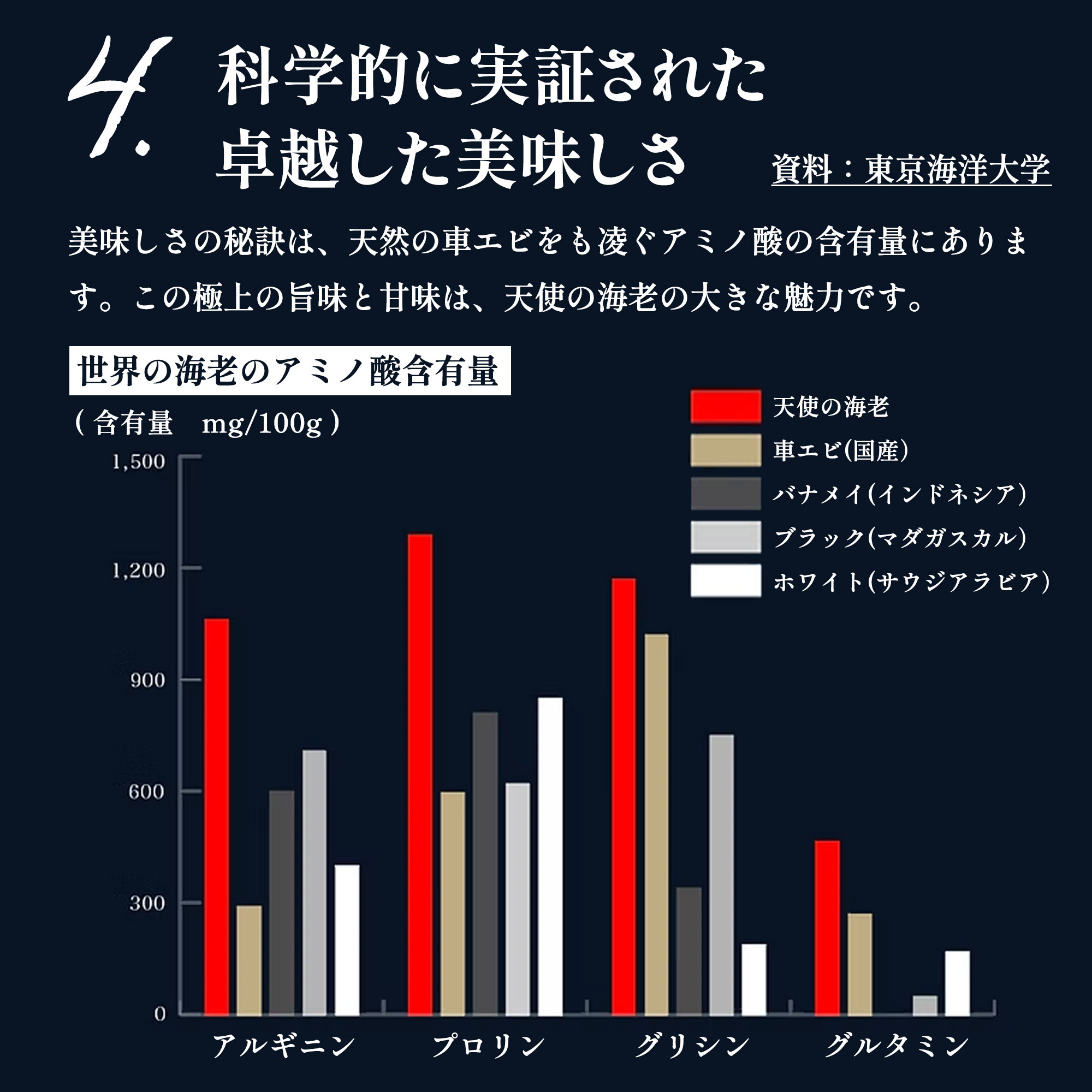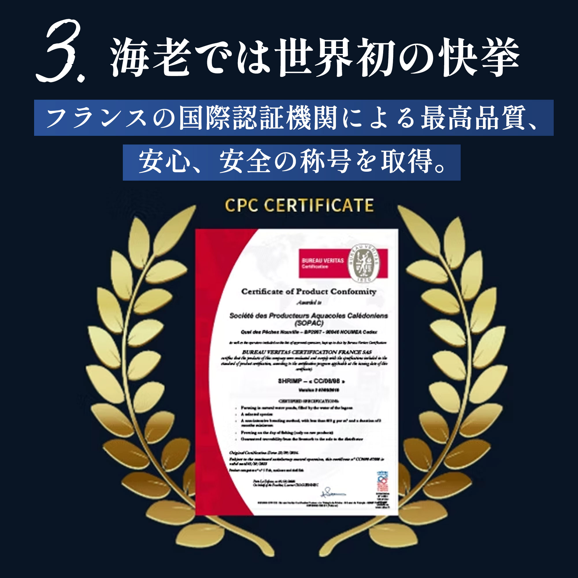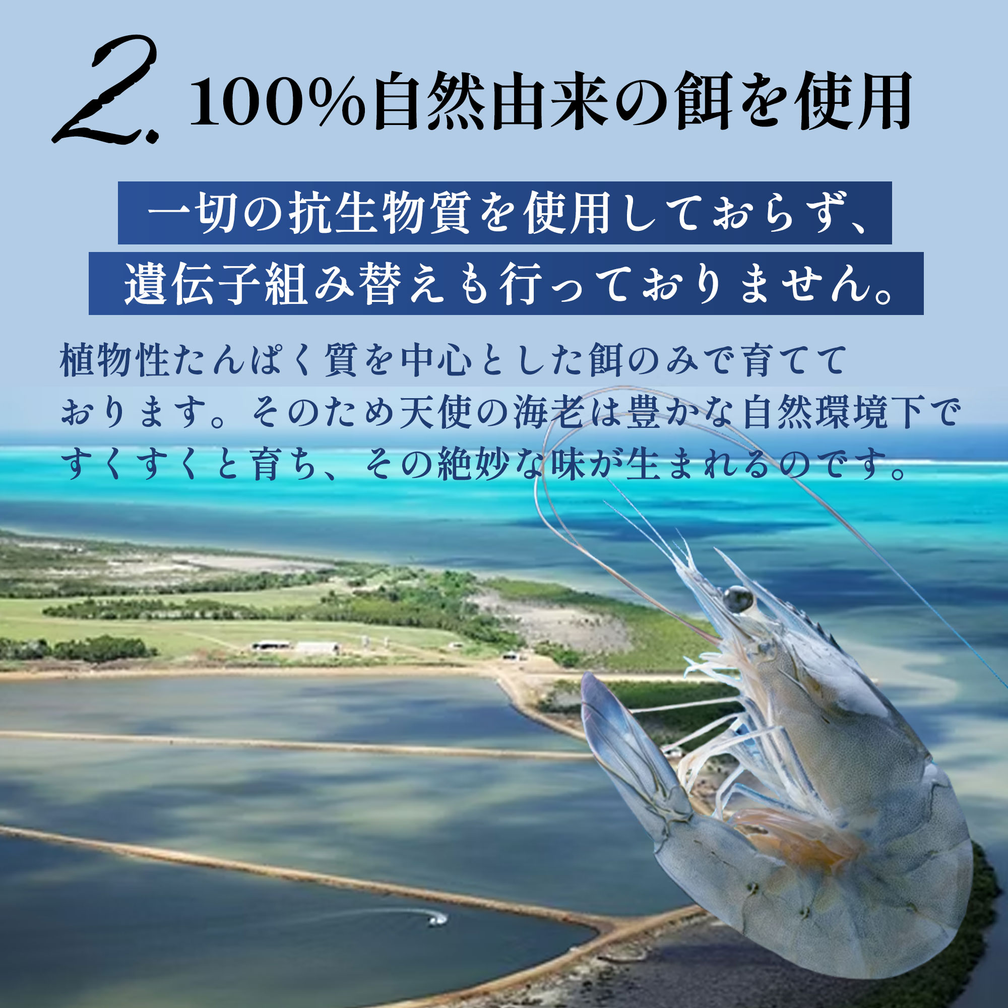 高級刺身用海老 徹底した衛生管理によりまったく汚染のない安全な海水、抗生物質不使用・餌は完全自然食で生育された、南太平洋に浮かぶニューカレドニア(プチ・フランス・・・ともいわれる)本当に美しい海やサンゴ礁に囲まれた島国。ニューカレドニア産の養殖エビは「天使のエビ(パラダイス・プロ-ン)」と呼ばれています。この海老は、フランス本国では高い品質ランクに位置付けらています。その理由は、一切の添加物を使用していないということ、水質や細菌検査を厳密に行い、高度の品質管理を行っている点にあります。活き海老だけをたった10分の瞬間急速凍結しているため活き海老と 変わらない身質を再現しました。身の引き締まった食感、癖のない上品な美味しさですので1度ご賞味下さい
